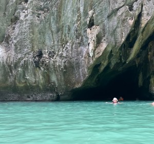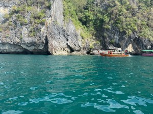 Just nu befinner jag mej i Thailand. I går hade jag en stora utmaningen. Vi var ute med en Longtail boat, fyra öar på en dag. På en av öarna stod jag inför inför en av mitt livs största utmaningar, att simma in i en den mörk grotta (Emerald Cave) på ön Koh Mook.